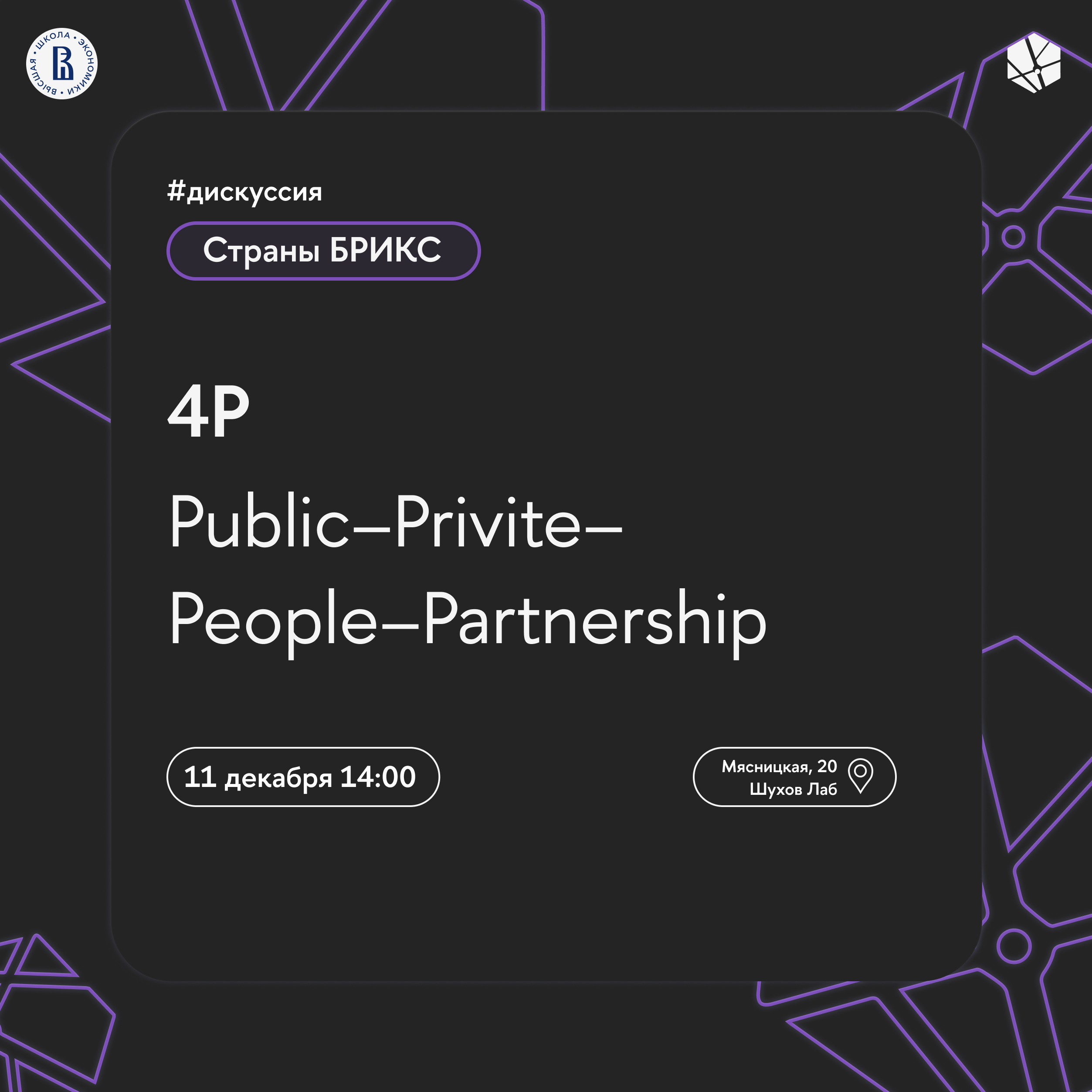 Дискуссия посвящена концепция 4P: Public-Private-People-Partnership. Ключевой темой для обсуждения станет вопрос интеграции граждан в процессы городского развития и принятия управленческих решений в городах. Встреча объединит экспертов из России, Индии, Китая, Южной Африки и Индонезии.